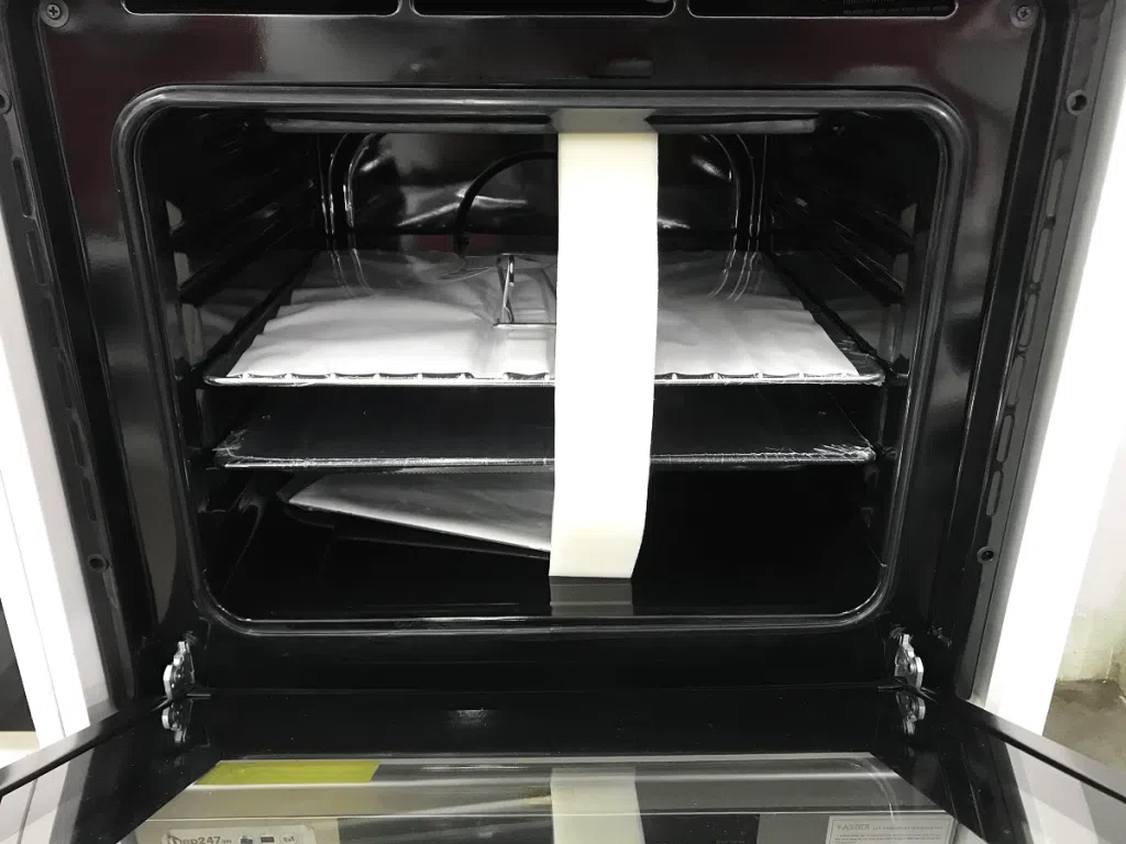 Khoang lò phẳng sạch sẽ và bền: bên trong lòng lò được làm bằng chất liệu thép không gỉ cao cấp, an toàn và dễ vệ sinh. Bên trong có nhiều rãnh cho bạn tùy ý thay đổi chiều cao vị trí đặt khay nướng.