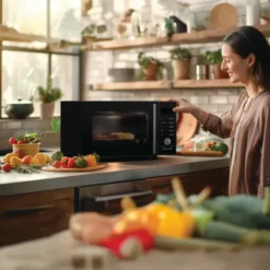 - Công suất 850W với 5 mức vi sóng linh hoạt, cùng 8 thực đơn nấu tự động giúp tiết kiệm thời gian lựa chọn chế độ.