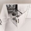 Mâm xoay ¾ là một sản phẩm được làm từ chất liệu inox chống gỉ được thiết kế 2 tầng riêng biệt, mỗi tầng có cấu tạo bằng 3/4 của hình tròn để khi mở cánh tủ ta có thể mở được cánh tủ hoàn toàn 180 độ. Nhờ đó có thể tối ưu sức chứa đồ đạc ở trong gia đình.