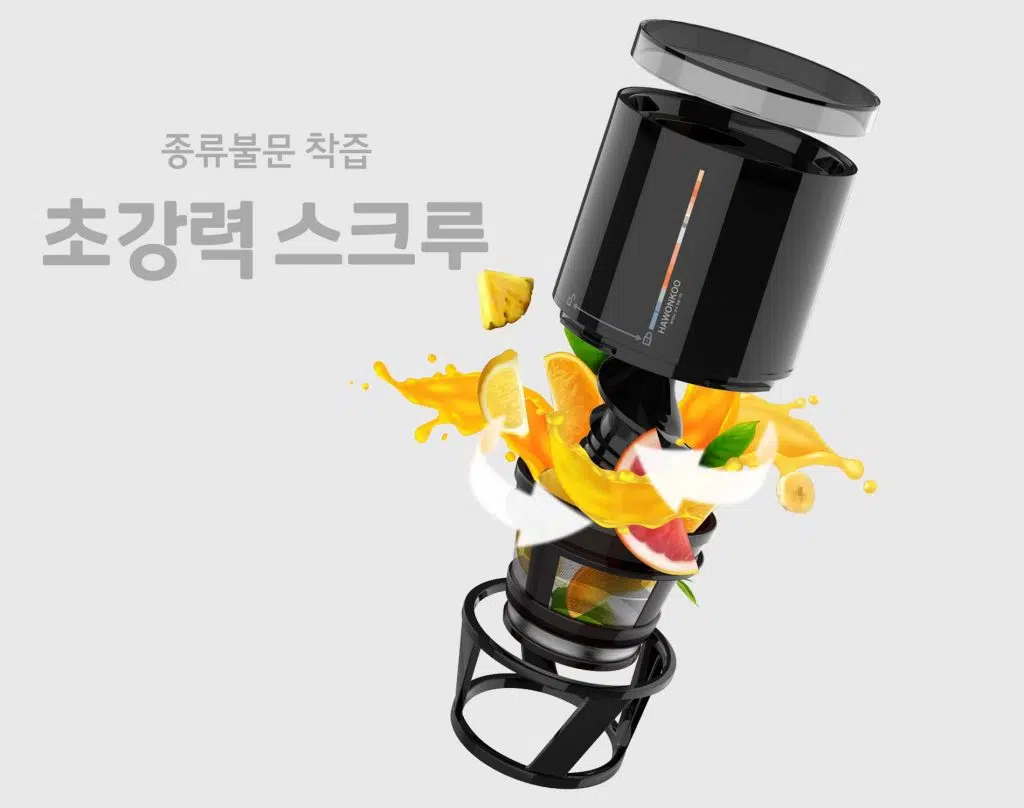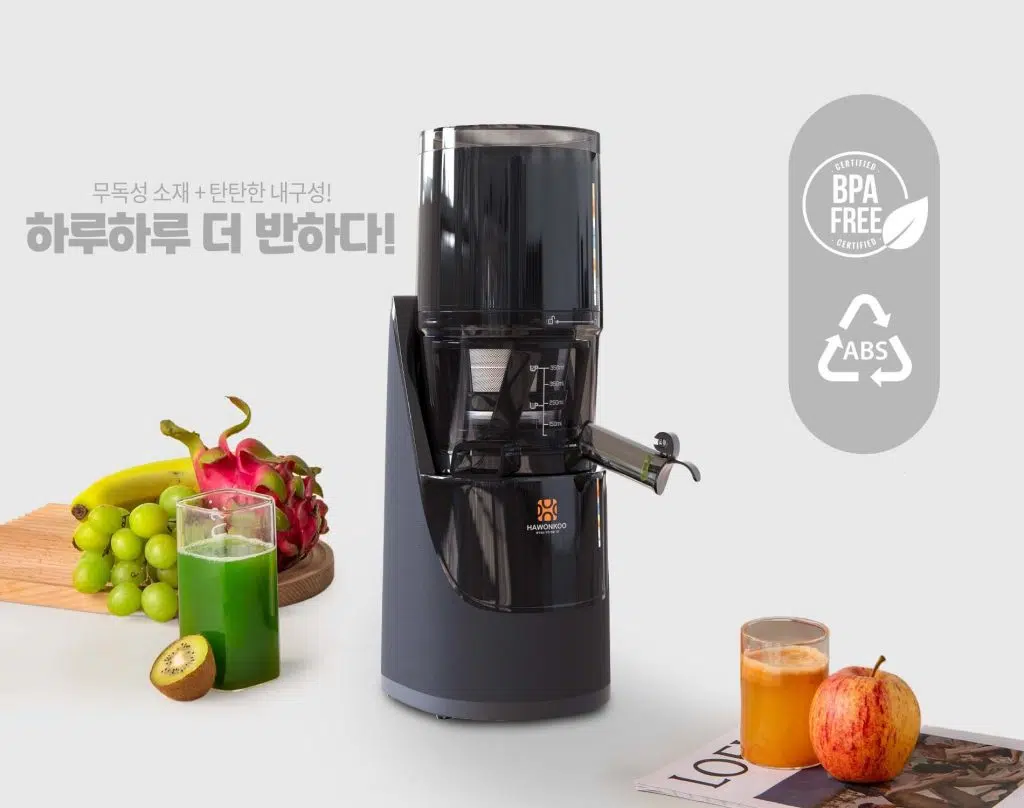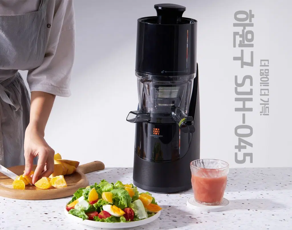 Máy ép chậm SJH-045-BA là dòng sản phẩm máy ép chậm Hawonkoo sử dụng công nghệ ép chậm được cấp bằng sáng chế J.M.C.S với công nghệ ép 60 vòng/phút giúp ép kiệt bã tới 90%. Sở hữu 2 màng lọc ưu việt: