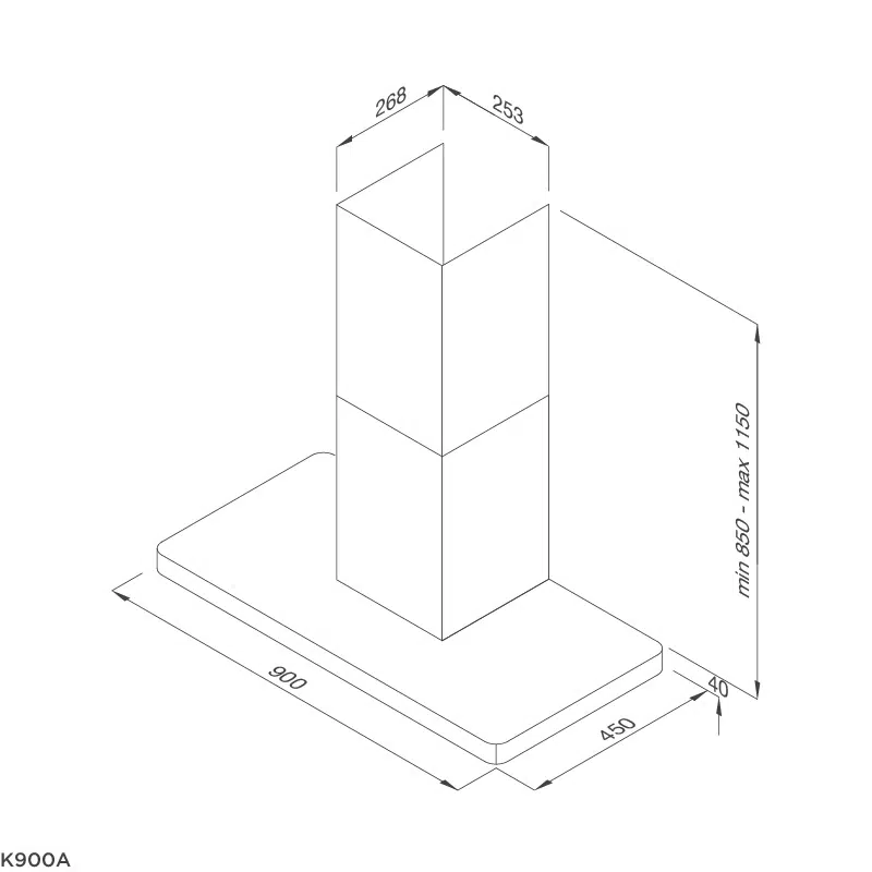 Thông số kỹ thuật máy hút khử mùi áp tường K900A