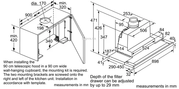 Thông số kỹ thuật máy hút mùi Bosch DFS097J50B 90CM