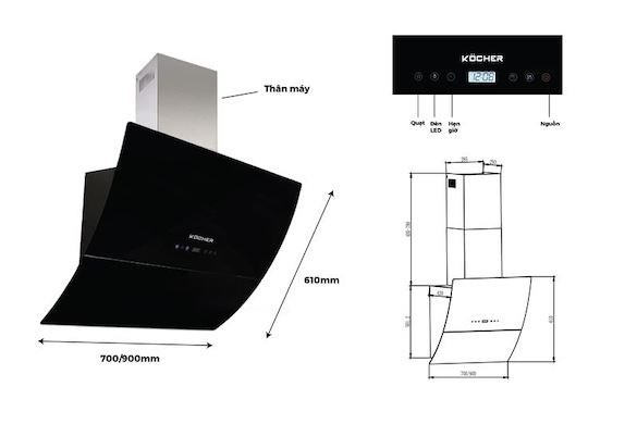 Máy hút mùi áp tường Kocher K-2080E (70cm)