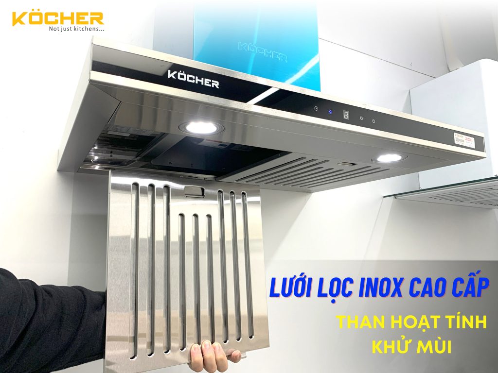 Máy hút mùi áp tường Kocher K-225C Pro 70cm sự kết hợp mới khi được trang bị lưới lọc inox chống rỉ cao cấp