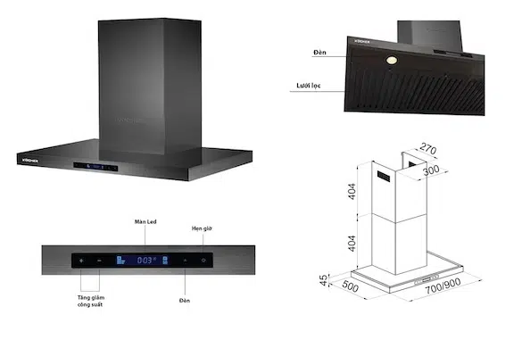 Máy hút mùi áp tường Kocher K 225MI 90cm có màu đen độc nhất, tôn lên vẻ sang trọng, đẳng cấp không gian bếp