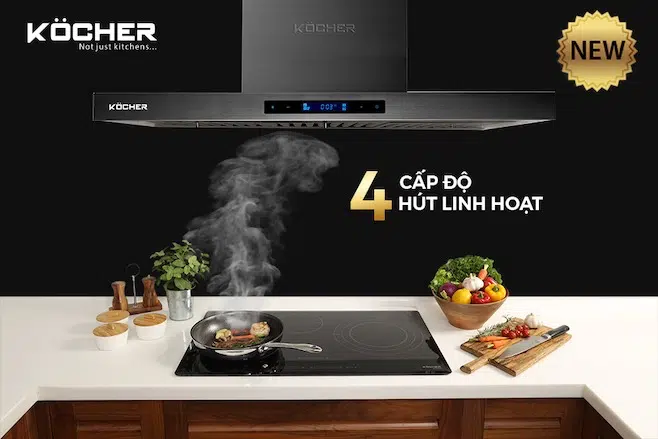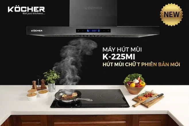 Máy hút mùi áp tường Kocher K 225MI 90cm có công suất hút lớn, đánh bay mọi mùi đồ ăn, dầu mỡ trong trong không gian sống của bạn