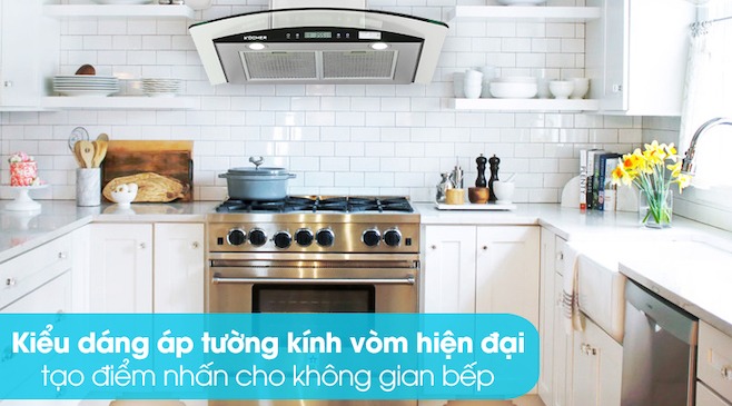 Máy hút mùi kiểu dáng kính cong hiện đại phù hợp với mọi không gian. Với chất liệu kính cường lực cao cấp siêu bền sẽ mang tới cho người dùng những trải nghiệm tuyệt vời.