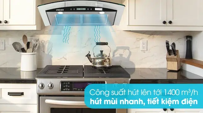 Máy hút mùi K-228S được hãng Kocher trang bị loại động cơ thế hệ mới có hiệu suất cực cao, có thể tạo ra công suất lớn nhất lên tới 1400m3/h với 3 cấp độ hút linh hoạt sẽ giúp hút sạch mọi mùi hôi, mùi thức ăn khó chịu bám trong nhà bếp một cách nhanh chóng.