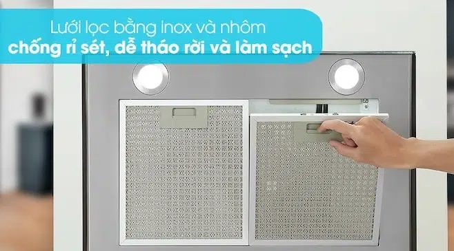 Sử dụng lưới lọc hợp kim 1*5 lớp giúp ngăn chặn sự hình thành và bám dính tối đa của dầu mỡ. Bạn sẽ không còn phải tốn nhiều thời gian cho việc vệ sinh bảo quản máy hút mùi sau khi dùng nữa.