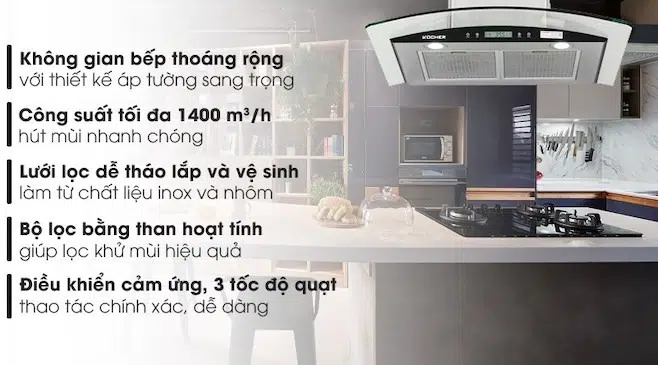 Với dòng máy hút mùi K-228S được thiết kế hiện đại, nâng cấp hơn với bảng điều khiển LCD cảm ứng 3 tốc độ. Công suất 195W cho việc khử mùi thức ăn được nhanh chóng hơn.