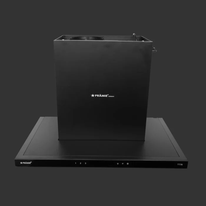 Máy hút mùi Pramie TT70 sở hữu thiết kế áp tường cực kỳ tinh tế với những đường nét tối giản nhưng đầy mạnh mẽ. Toàn bộ thân máy được hoàn thiện bằng vật liệu hợp kim thép không gỉ phủ sơn tĩnh điện cao cấp, chống bám bẩn và dễ dàng vệ sinh.