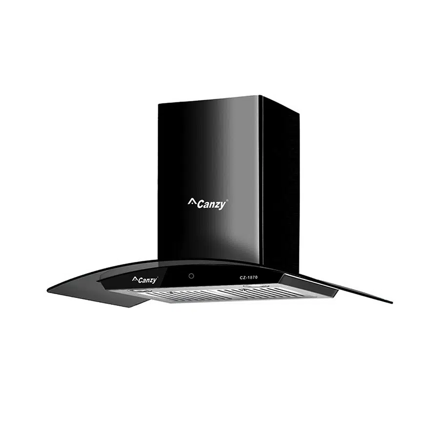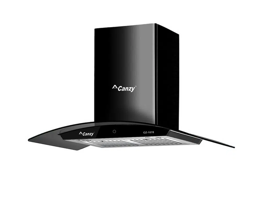 Máy hút mùi Canzy CZ 1870 là dòng máy hút khói khử mùi kính cong chiều dài 700 mm, đường kính ống thoát 150 mm. Máy có hai chế độ hút một là hút khử mùi tuần hoàn bằng bộ lọc than hoạt tính, hai là hút đẩy ra đường ống thoát ra ngoài.