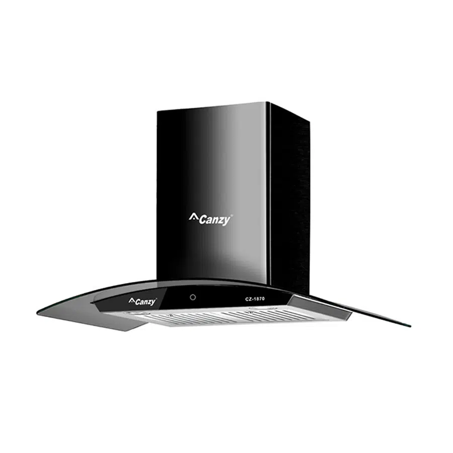 Máy hút mùi Canzy CZ 1890 là dòng máy hút khói khử mùi kính cong chiều dài 900 mm, đường kính ống thoát 150 mm. Máy có hai chế độ hút một là hút khử mùi tuần hoàn bằng bộ lọc than hoạt tính, hai là hút đẩy ra đường ống thoát ra ngoài.
