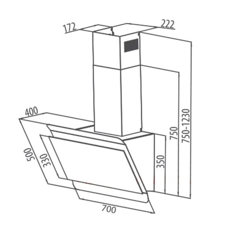 - Máy hút mùi kính vát vòm có viền trong