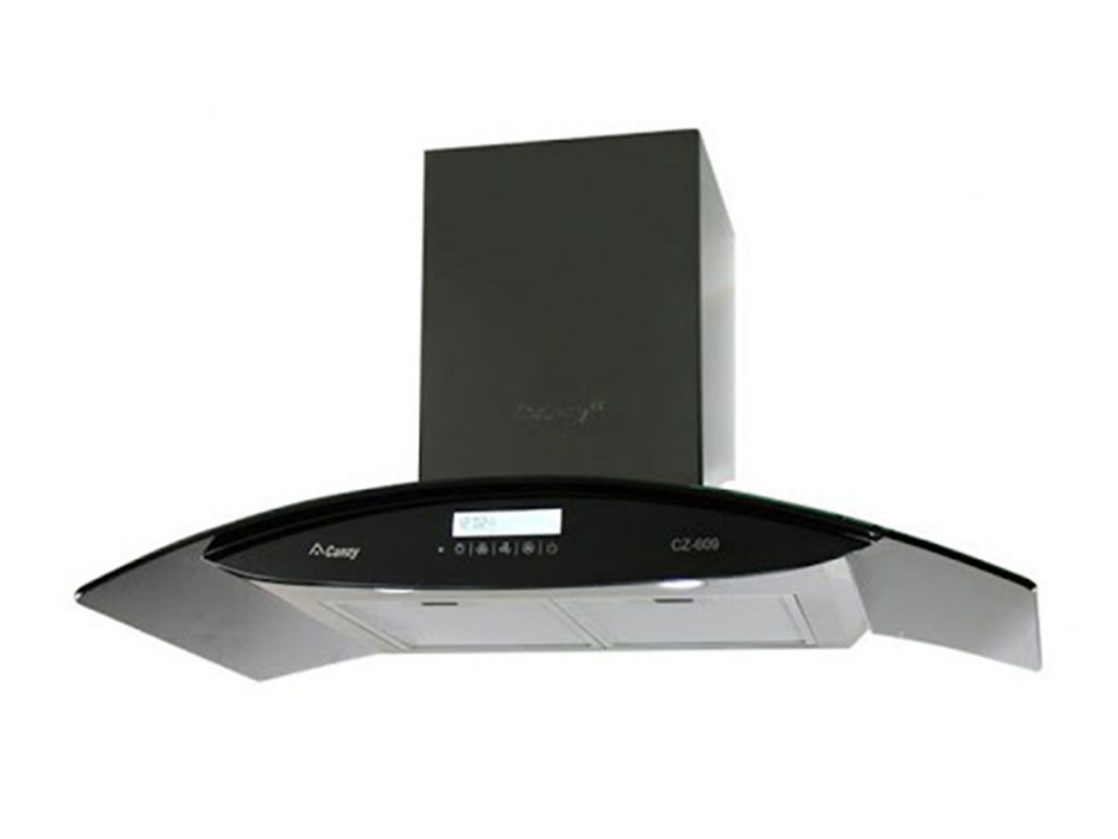 Máy hút mùi Canzy CZ 609 là dòng máy hút khói khử mùi kính cong chiều dài 900 mm, đường kính ống thoát 150 mm. Máy có hai chế độ hút một là hút khử mùi tuần hoàn bằng bộ lọc than hoạt tính, hai là hút đẩy ra đường ống thoát ra ngoài.