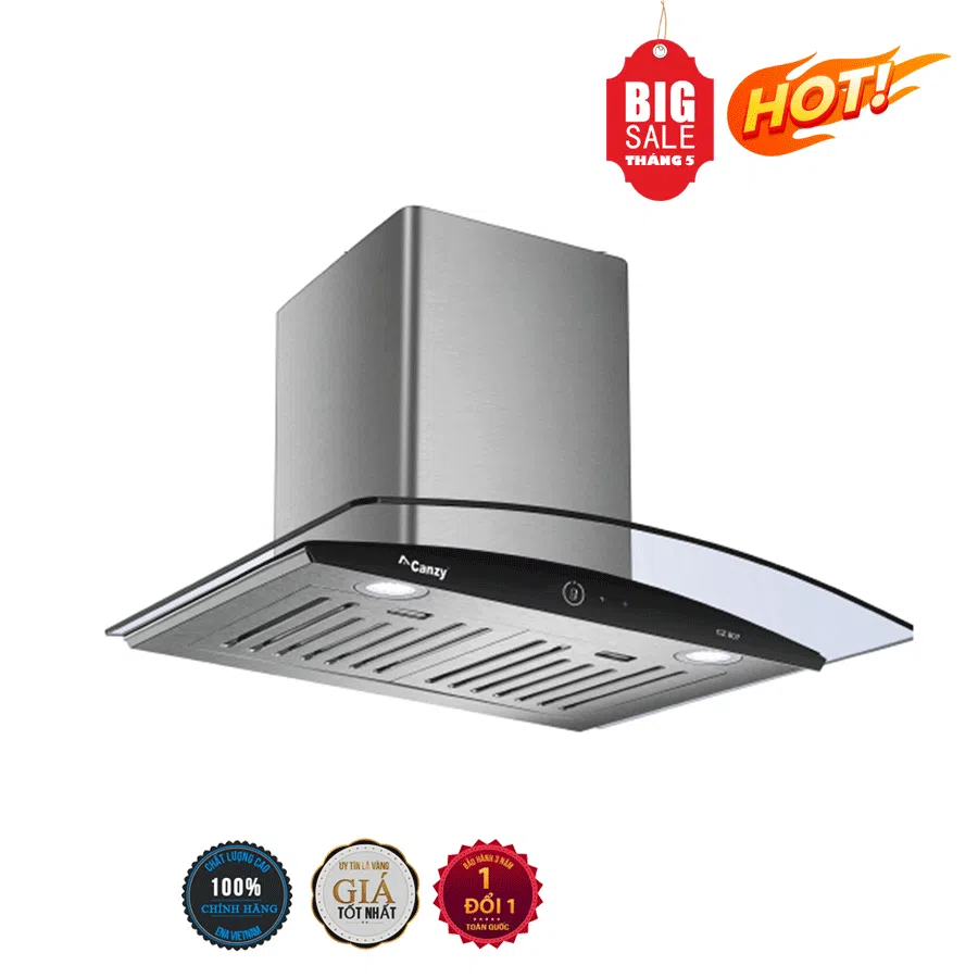 Máy hút mùi Canzy CZ 807 được làm bằng Inox, lưới lọc mỡ 5 lớp bằng hợp kim, máy trang bị công suất hút 1000 m3/h cùng 3 mức công suất hút từ nhỏ đến lớn dần. Máy có bảng điều khiển cảm ứng hiện đại, đèn LED chiếu sáng tiết kiệm điện năng.