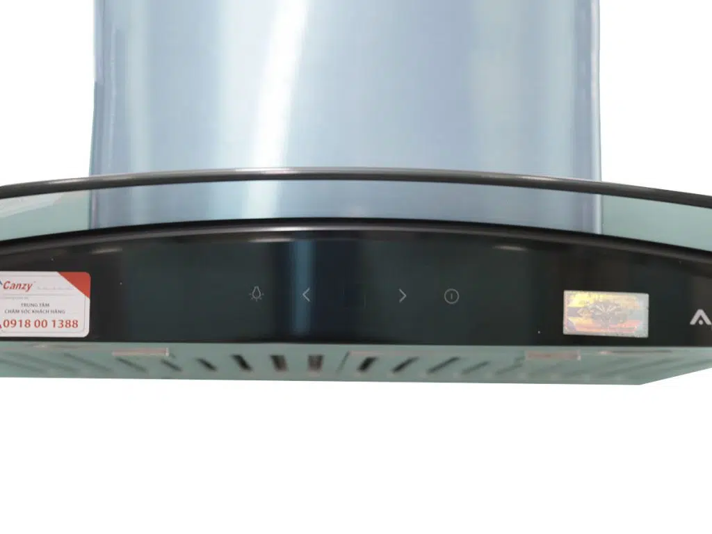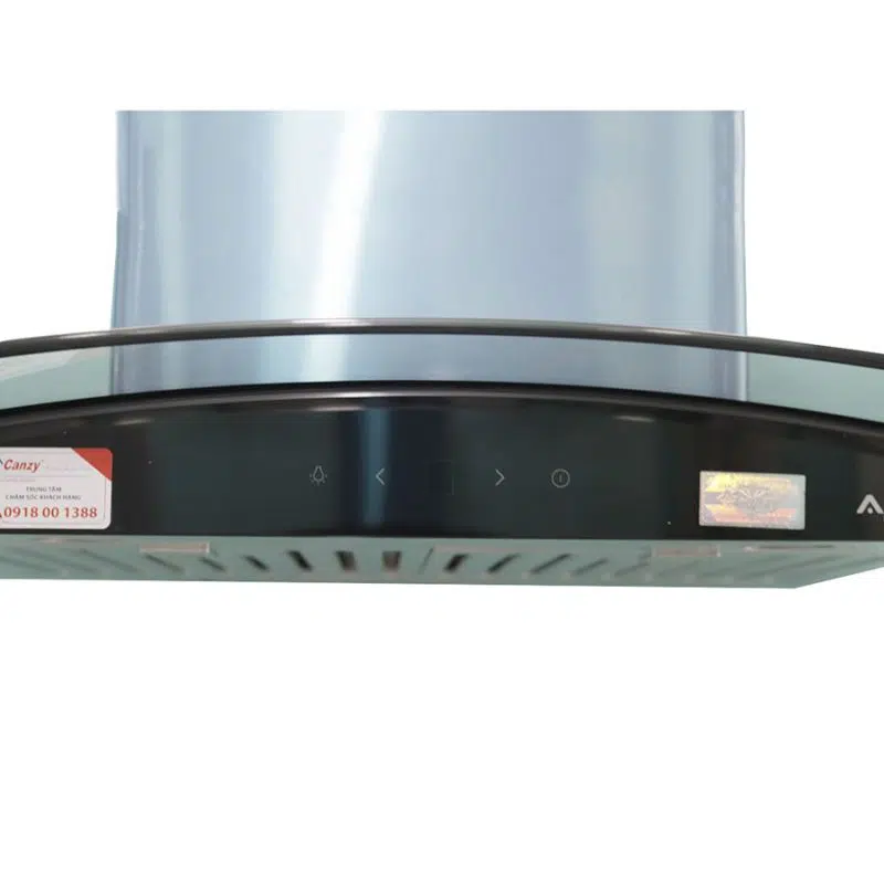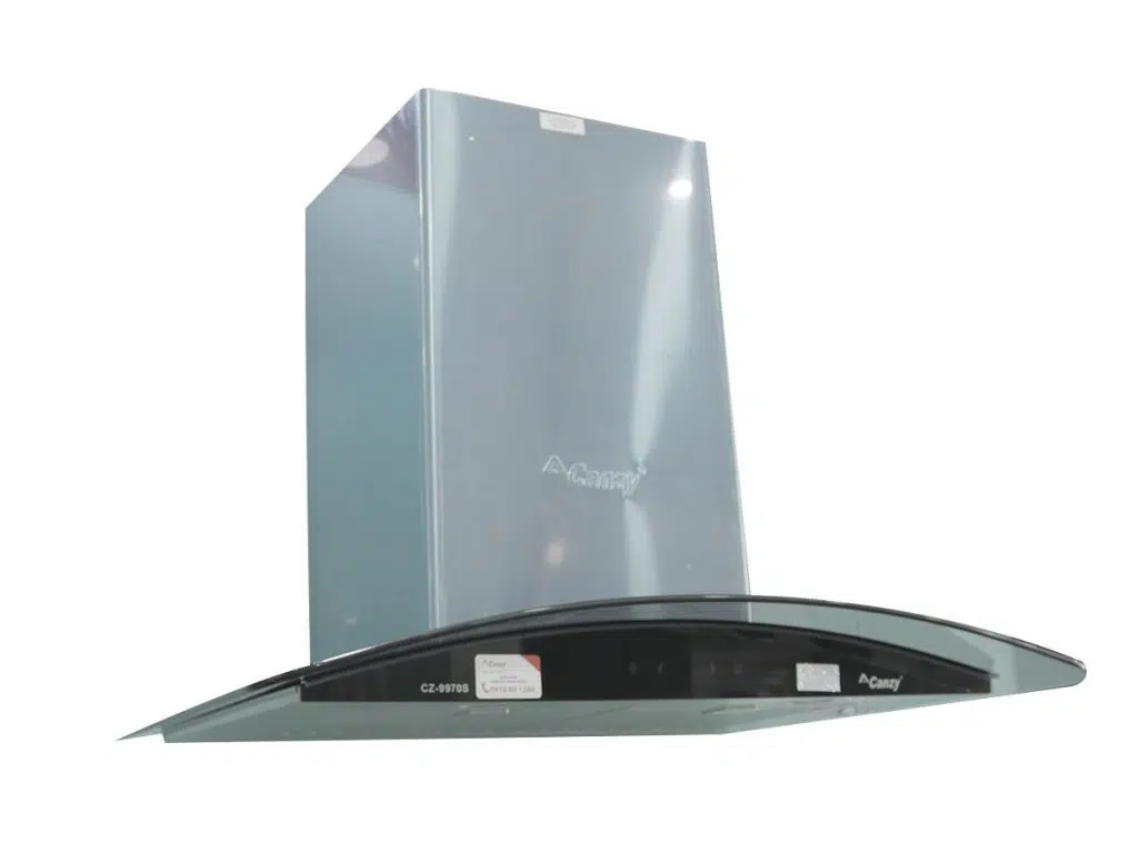 Máy hút mùi Canzy CZ 9990S là dòng máy hút khói khử mùi kính cong chiều dài 700 mm. Máy có hai chế độ hút một là hút khử mùi tuần hoàn bằng bộ lọc than hoạt tính, hai là hút đẩy ra đường ống thoát ra ngoài.