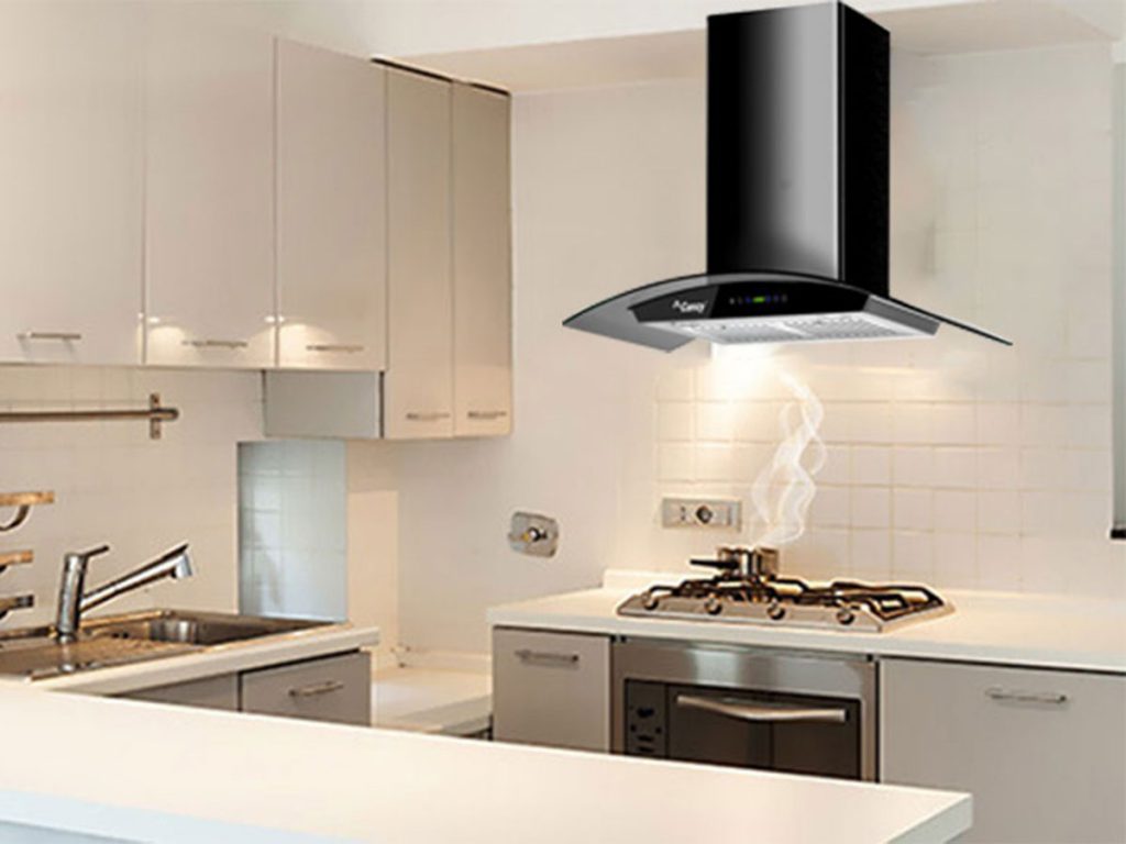 - Máy hút mùi kính cong