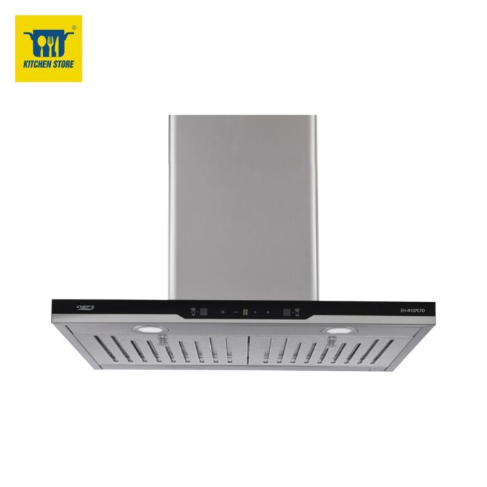 Máy hút mùi CHEF’S EH-R107E7D hình dáng chữ T phù hợp với nhiều không gian bếp hiện đại. Chất liệu thân máy làm từ inox cao cấp 430 sang trọng, màu sắc sáng, dễ dàng lau rửa, vệ sinh.