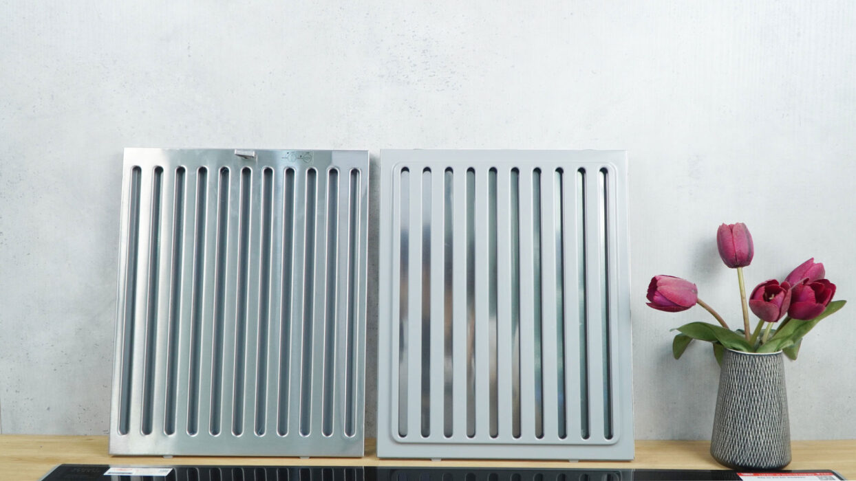 Lưới lọc thiết kế kiểu lưới lọc 3 lớp baffle inox siêu thoát, dễ dàng vệ sinh. Các mắt lưới đan xen tăng khả năng chống dầu mỡ vào máy.