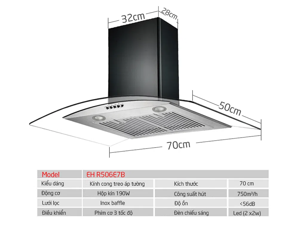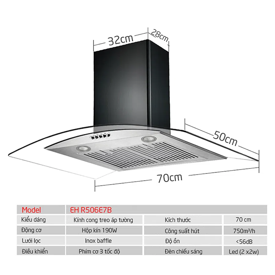 Máy hút mùi Chefs EH-R506E7B có khả năng hút, khử mùi làm sạch – làm thông thoáng cho không gian bếp của gia đình và bảo vệ sức khỏe của gia đình bạn.