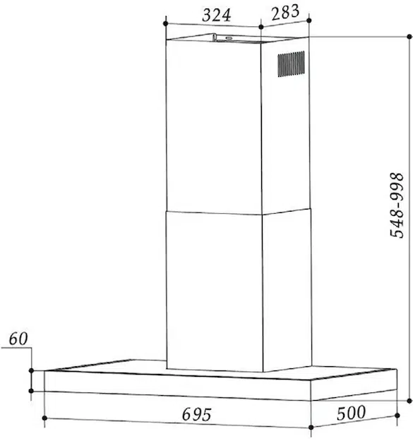 - Hút mùi chữ T mặt kính đen