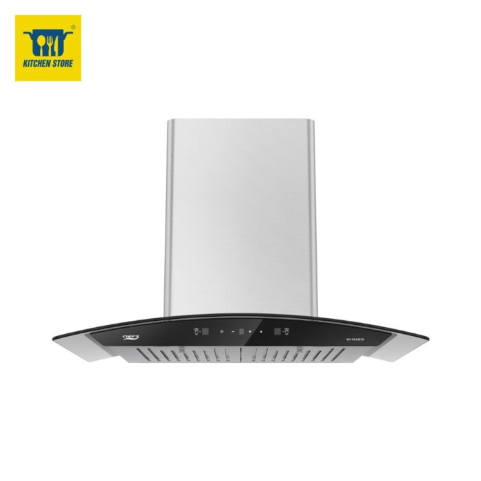Máy hút mùi EH-R502E7D có thiết kế dạng kính cong mềm mại, bề mặt phủ kính cường lực hiện đại, sang trọng dễ dàng vệ sinh