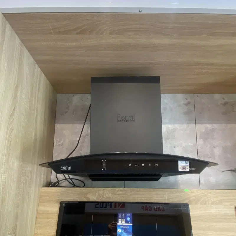 Máy hút mùi Fermi SH002 là dòng hút mùi gắn tường kiểu dáng kính cong sang trọng. Màu đen vừa tôn lên nét đẹp sang trọng vừa sạch sẽ, dễ dàng vệ sinh.