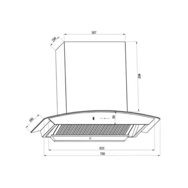 Hệ thống hút xả tuần hoàn và thông gió, khi dầu mỡ, mùi thực phẩm… được thu vào hệ thống và đi qua lưới lọc, sau đó được lọc qua than hoạt tính để khử mùi, dầu mỡ được giữ lại và đưa về cốc hứng mở trong máy. Khí sau khi được lọc sạch được đẩy ra khỏi máy thông qua đường ống thoát một chiều Ø 150mm.
