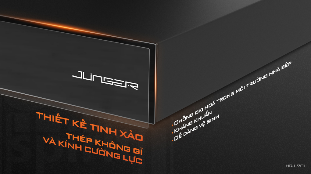 - Lắp đặt linh hoạt: Nhờ vào thiết kế âm tủ, áp tường và kích thước nhỏ gọn, Junger HRJ-701 có thể lắp đặt linh hoạt ở nhiều không gian giúp tiết kiệm diện tích cho căn bếp thêm rộng rãi thoáng mát.