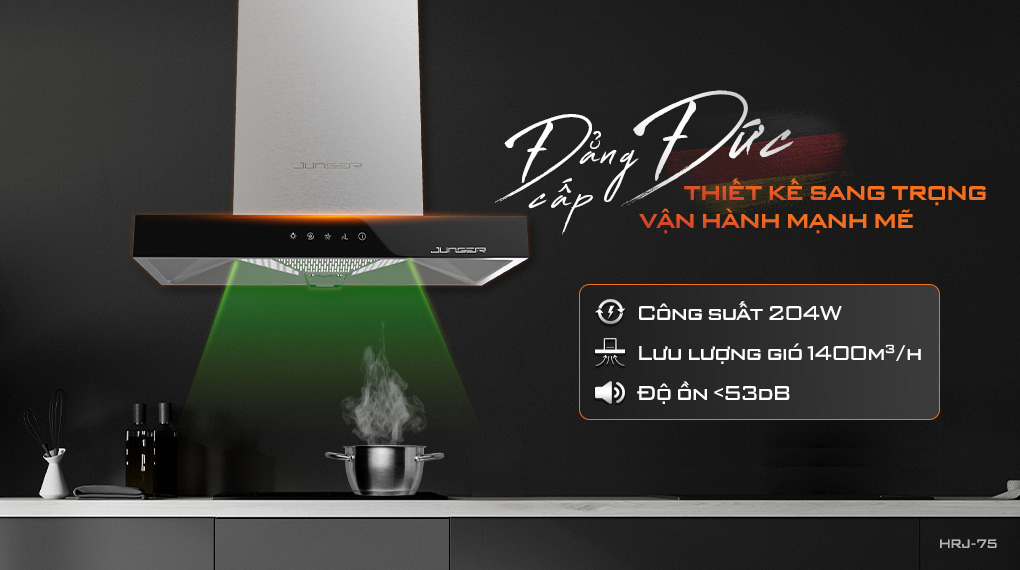 Máy hút mùi Junger HRJ-75 với thiết kế hiện đại chuẩn Đức nâng tầm không gian sống.