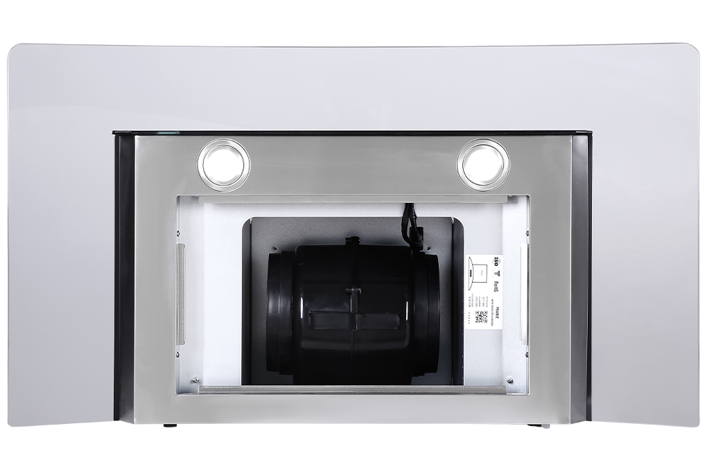 Máy hút mùi kính cong hoạt động với công suất 180W và một quạt hút có tốc độ hút cao đạt đến 1100 m3/h hút sạch mùi hôi trong thời gian ngắn tiết kiệm điện năng