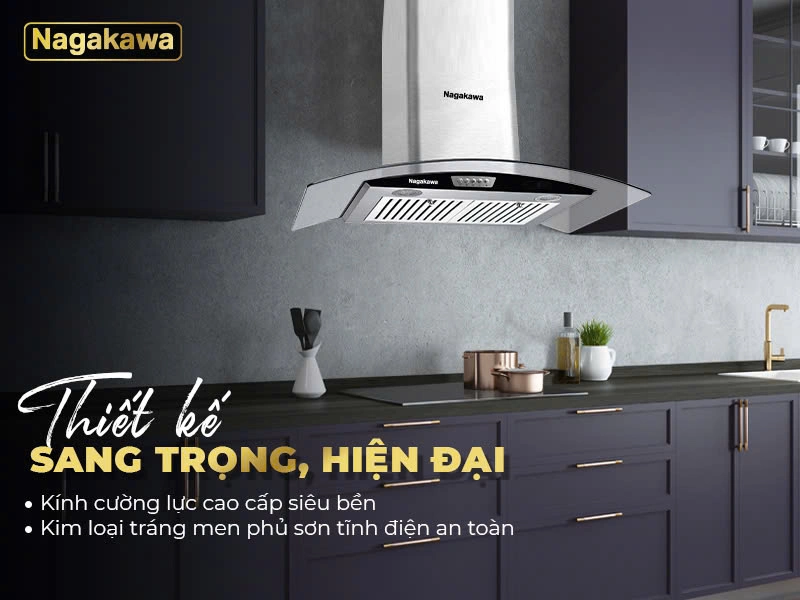 Máy hút mùi cao cấp Nagakawa NAG1857-70CM làm từ kính cường lực cao cấp siêu bền cùng chất liệu kim loại tráng men phủ lớp sơn tĩnh điện đảm bảo an toàn cho người sử dụng.