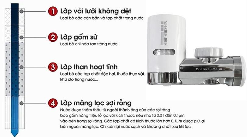 Máy Lọc Nước Trực Tiếp tại Vòi CleanSui EF201 sử dụng công nghệ đầu lọc mới nhất có tên gọi “Super High Grade”. Công nghệ này giúp loại bỏ hiệu quả các tạp chất trong nước, bao gồm kim loại nặng, rỉ sét, sắt, chì hòa tan và các hóa chất như thuốc diệt cỏ, trừ sâu, cũng như các chất gây ung thư thuộc nhóm CAT.