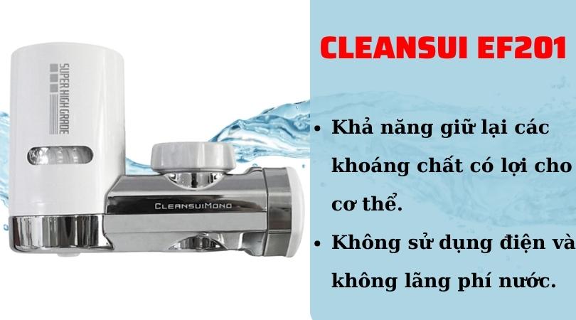Một ưu điểm đặc biệt của Máy Lọc Nước Trực Tiếp tại Vòi CleanSui EF201 là khả năng giữ lại các khoáng chất có lợi cho cơ thể. Trong quá trình lọc nước, sản phẩm không loại bỏ hoàn toàn các khoáng chất quan trọng như canxi, magie, kali và natri. Điều này đảm bảo rằng bạn có được một nguồn nước sạch, giàu khoáng chất, tốt cho sức khỏe và sự phát triển của cơ thể.
