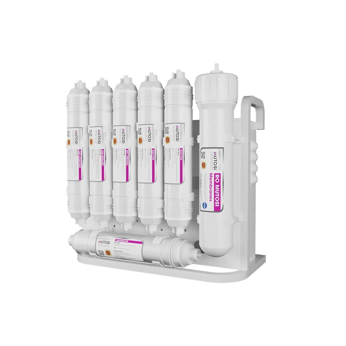 - Lọc sạch hơn nhờ màng lọc RO Mutosi Slitec đạt chứng nhận toàn cầu NSF/ANSI58 – tiêu chuẩn cao nhất cấp cho màng RO bởi tổ chức NSF (tổ chức hợp tác về an toàn thực phẩm và nước uống trực thuộc WHO), đồng thời được công bố chính thức trên website của NSF