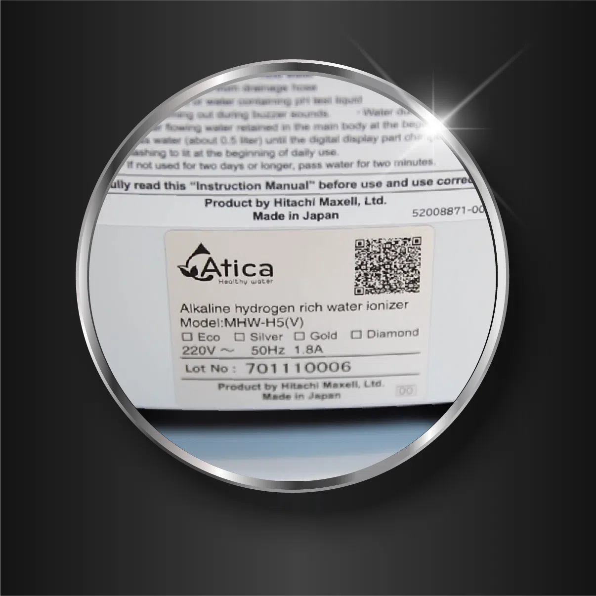 Nhờ áp dụng công nghệ này, Atica là dòng máy tạo nước ion kiềm duy nhất hiện nay có thể làm giàu hydro tại mức nước uống được(pH~9.5), đồng thời giảm tỷ lệ nước thải xuống dưới mức 5%.