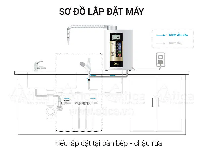 Sơ đồ lắp đặt máy tạo nước ion kiềm giàu hydro Atica Silver
