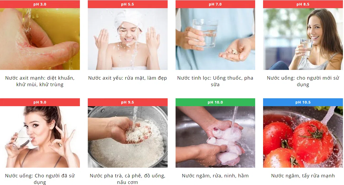 TẠO RA 8 LOẠI NƯỚC CÓ ĐỘ PH KHÁC NHAU