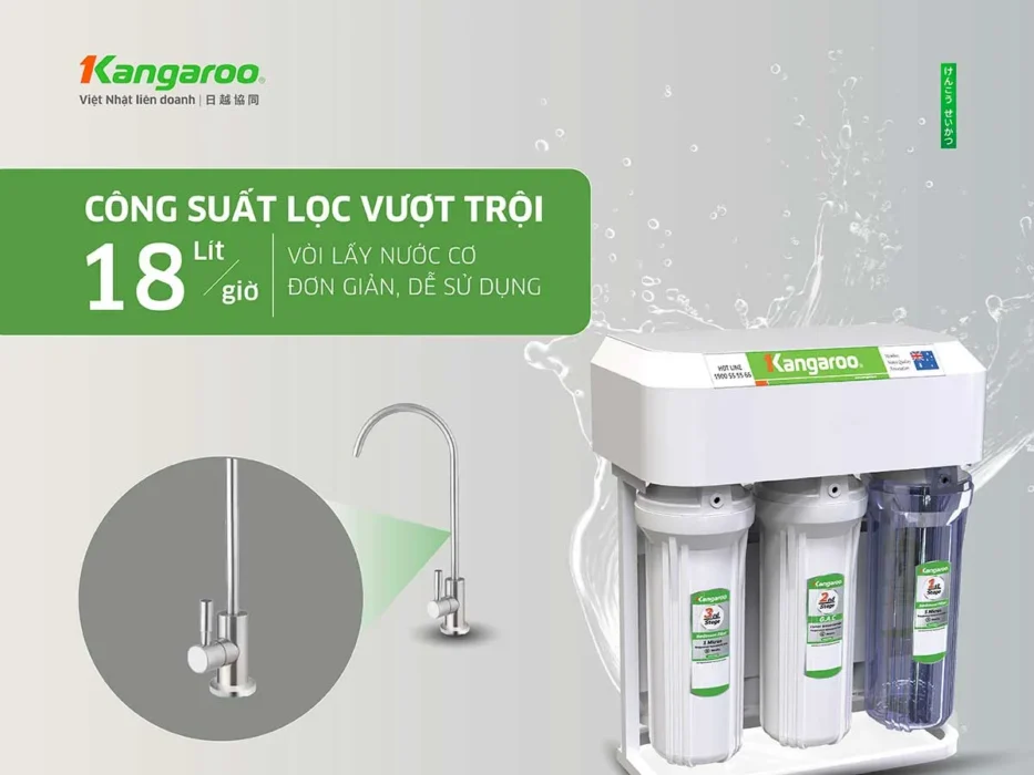 Vượt trội so với các mẫu để gầm cũ trên thị trường, máy lọc nước Kangaroo Hydrogen KGHP10K2 có công suất lọc lên tới 18L/h phục vụ thoải mái nhu cầu sử dụng liên tục cho 4 – 6 người/ngày. Không chỉ dùng để uống trực tiếp hàng ngày, bạn có thể sử dụng nước để nấu ăn, sinh hoạt, rửa thực phẩm…
