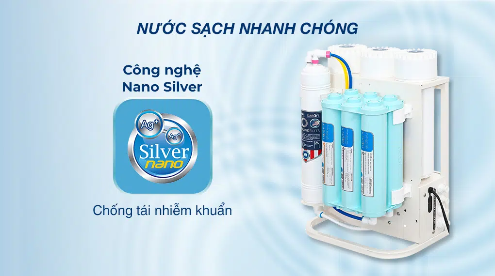 Công nghệ kháng khuẩn Nano Silver giúp chống tái nhiễm khuẩn sau khi nước đi qua màng RO.