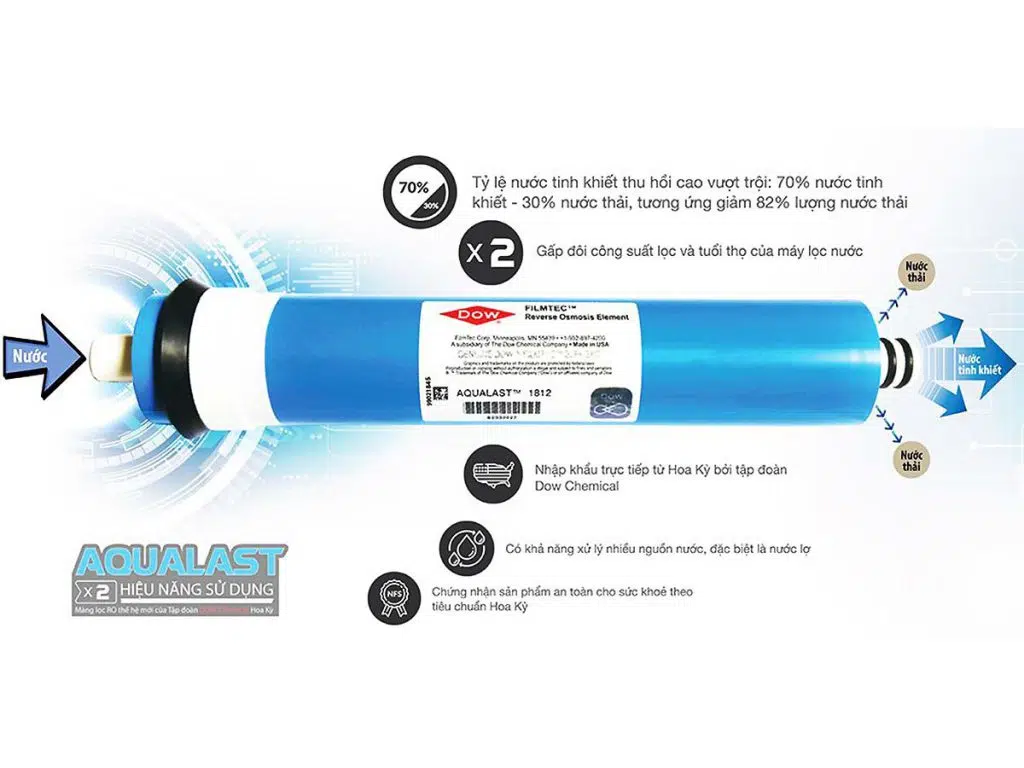 Máy lọc nước Karofi Optimus là một trong những sản phẩm đầu tiên tại Việt Nam sử dụng màng RO Aqualast của Dow Filmtec – Thương hiệu màng RO hàng đầu về uy tín, chất lượng trên thế giới – Gấp đôi hiệu năng sử dụng với những ưu điểm vượt trội.