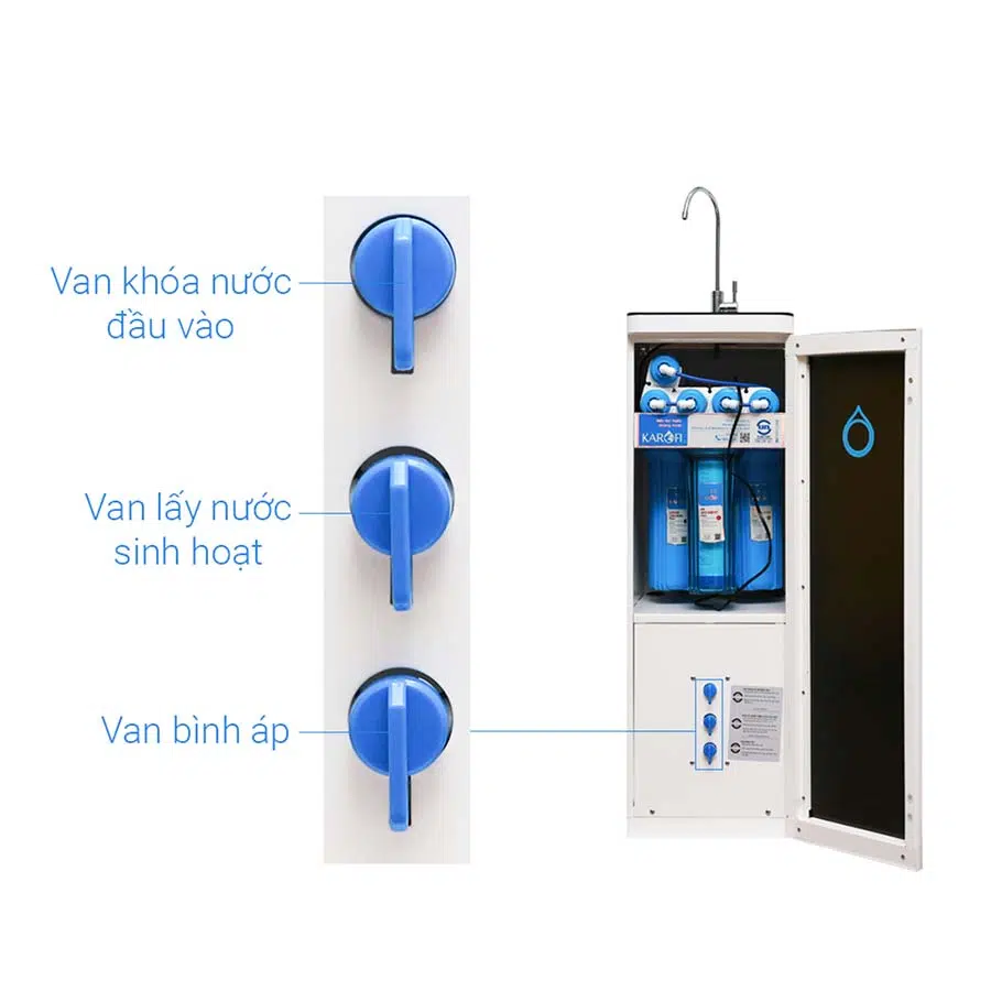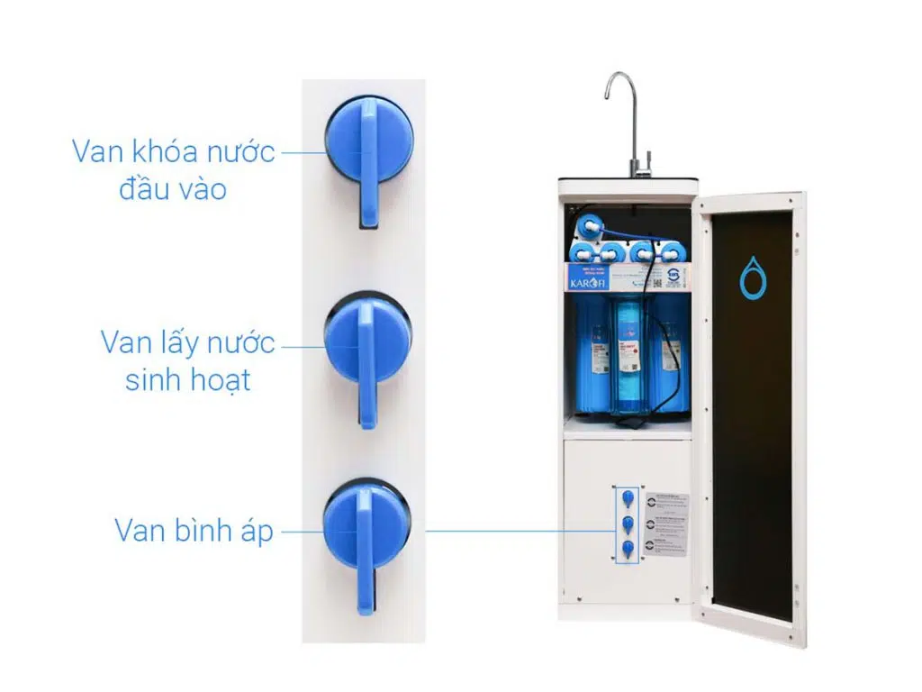 - Bộ điều khiển van áp thấp giúp người dùng chủ động cho máy hoạt động trong trường hợp nước cấp đầu vào yếu hoặc không ổn định.