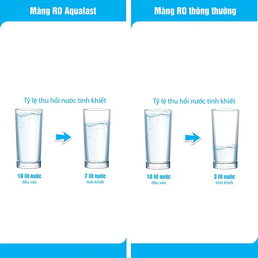 - Có khả năng xử lý nhiều nguồn nước: nước máy, nước giếng khoan, đặc biệt nước có TDS cao tới 3000ppm (nước lợ)