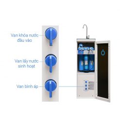• 3 cấp lọc thô: Giúp loại bỏ loại bỏ các cặn bẩn lơ lửng có kích thước lớn (bùn đất, sạn cát…), Clo, clorine, chất hữu cơ dư thừa, các chất khí gây mùi trong nước và các chất oxy hóa gây hỏng màng RO.