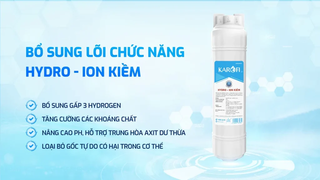 Đặc biệt, KAD-D66S Pro tích hợp thêm 1 lõi Hydro-ion kiềm thay nhanh giúp bổ sung Hydrogen hoạt hóa bằng phương pháp tự nhiên, tăng cường các khoáng chất cần thiết; đồng thời nâng cao pH, hỗ trợ trung hòa hàm lượng axit dư và loại bỏ gốc tự do có hại trong cơ thể. Mang lại nguồn nước được bổ sung gấp 3 Hydrogen, giàu các khoáng chất có lợi cho cơ thể.