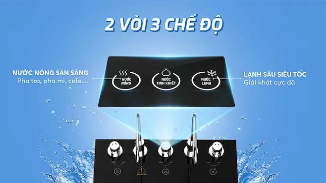 2 vòi độc lập cùng 3 chế độ nước nóng – lạnh – tinh khiết luôn sàng cho mọi nhu cầu của cả gia đình