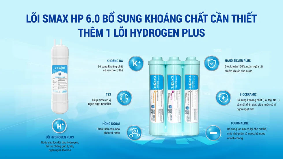 LÕI SMAX HP 6.0 BỔ SUNG KHOÁNG CHẤT CẦN THIẾT THÊM 1 LÕI HYDROGEN PLUS