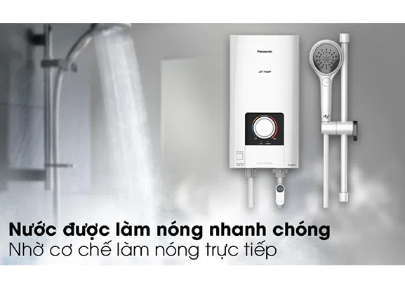 Máy Nước Nóng PANASONIC DH-4NTP1VM sử dụng cơ chế làm nước nóng trực tiếp và công suất 4500 W mạnh mẽ giúp cho nước được làm nóng ngay. Vậy nên chỉ cần một cái nhấn nút là bạn có thể tận hưởng và đắm chìm dưới dòng nước ấm ngay lập tức mà không phải mất thời gian chờ đợi.