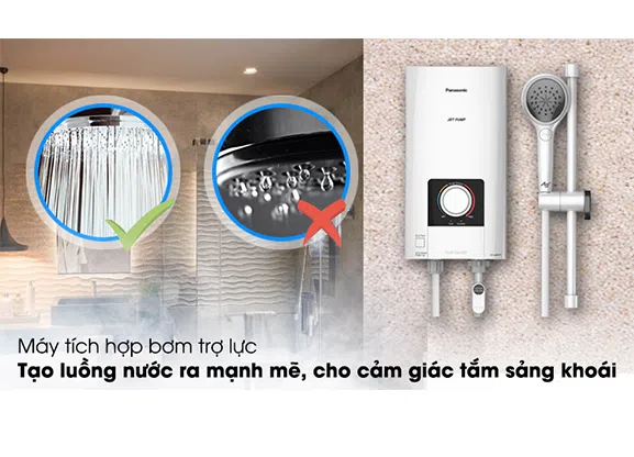 Máy nước nóng Panasonic này có luồng nước mạnh mẽ, dòng chảy dứt khoát không nhỏ giọt kể cả những nơi có nguồn nước yếu. Nhờ tích hợp bơm trợ lực vận hành siêu êm, máy sẽ được tạo áp suất cho dòng chảy mạnh hơn tạo cảm giác sảng khoái cho người tiêu dùng.
